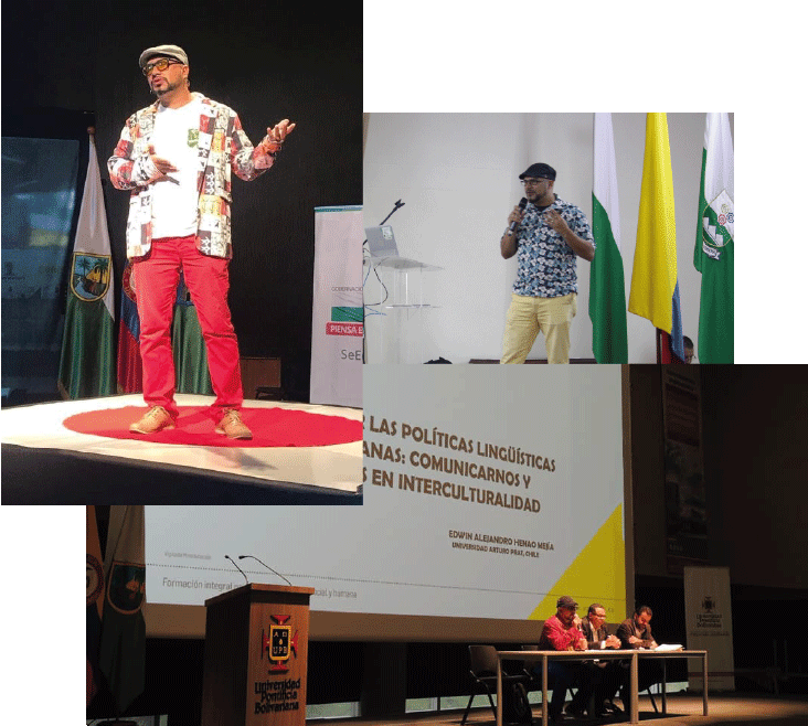 Como profesor investigador, he venido compartiendo mis trabajos académicos, innovaciones pedagógicas y culturales y reflexiones educativas en diferentes eventos académicos de carácter nacional e internacional, algunos de los eventos en los que he participado como ponente, expositor y conferencista son: